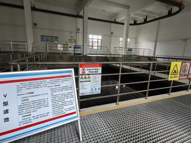 记者看到,在V型滤池里,1.2米厚的石英砂好像一个高密度筛子,把更细微的杂质筛出去。